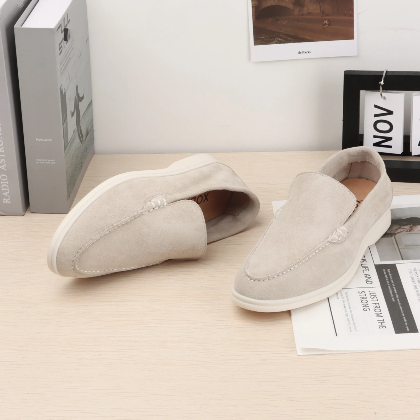 Questi eleganti mocassini in pelle scamosciata combinano un design lussuoso con un comfort supremo. La tomaia in morbida pelle scamosciata e la suola in gomma flessibile li rendono ideali per l'uso quotidiano, mentre il classico stile slip-on assicura una facile calzata.