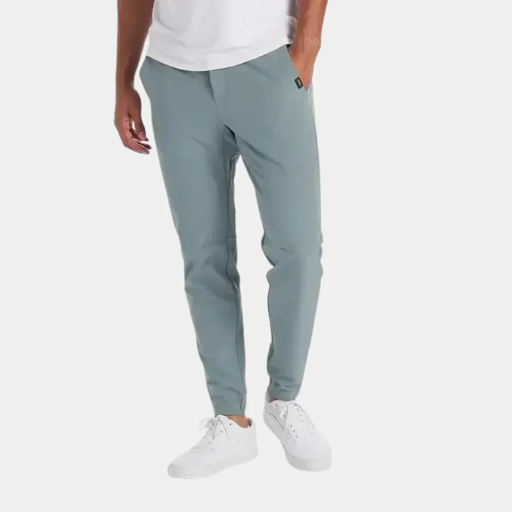 Questi pantaloni versatili combinano il comfort dei pantaloni sportivi con un look elegante. Il tessuto elasticizzato e la vestibilità slim assicurano una perfetta aderenza, mentre il materiale leggero è ideale per l'uso quotidiano.