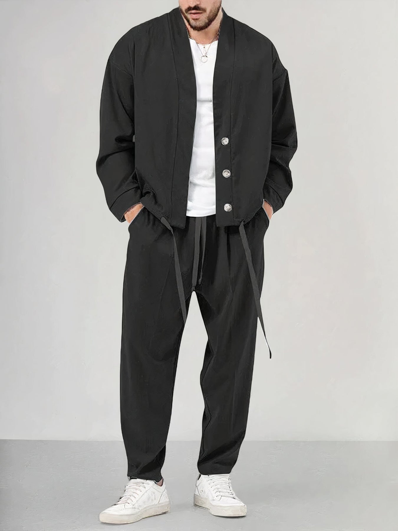 Set Kimono da uomo con gilet e pantaloni - Tessuto traspirante, confortevole stile casual